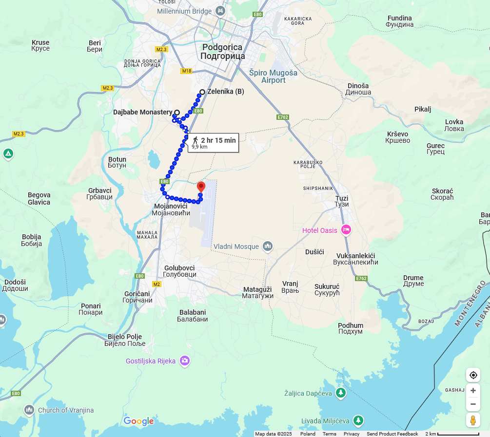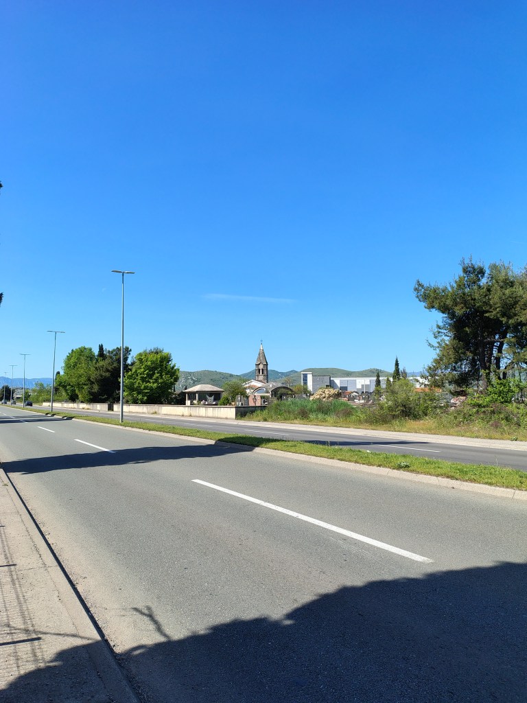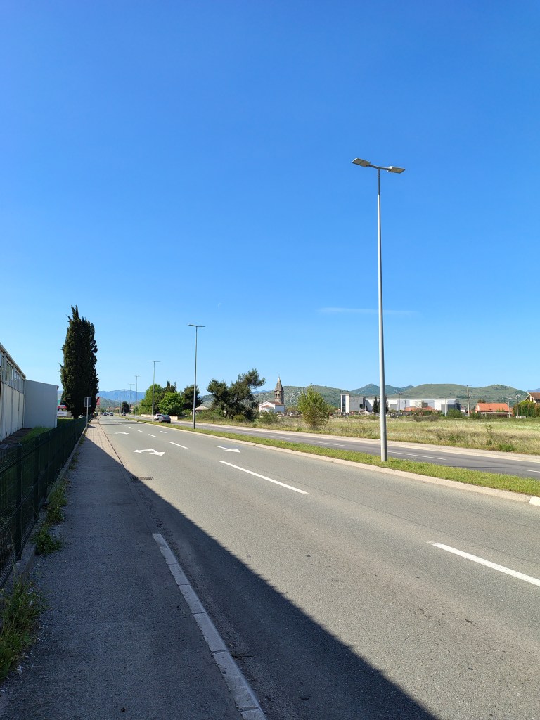 Since there was a ceremony going on in the monastery, I did not want to disturb it, so I did not go inside. I went the road towards airport, which surprisingly mostly had sidewalk for the most of the part. The airport is located in 🇲🇪 Mojanovići village. It took me almost 2 hours to get there (8km).
